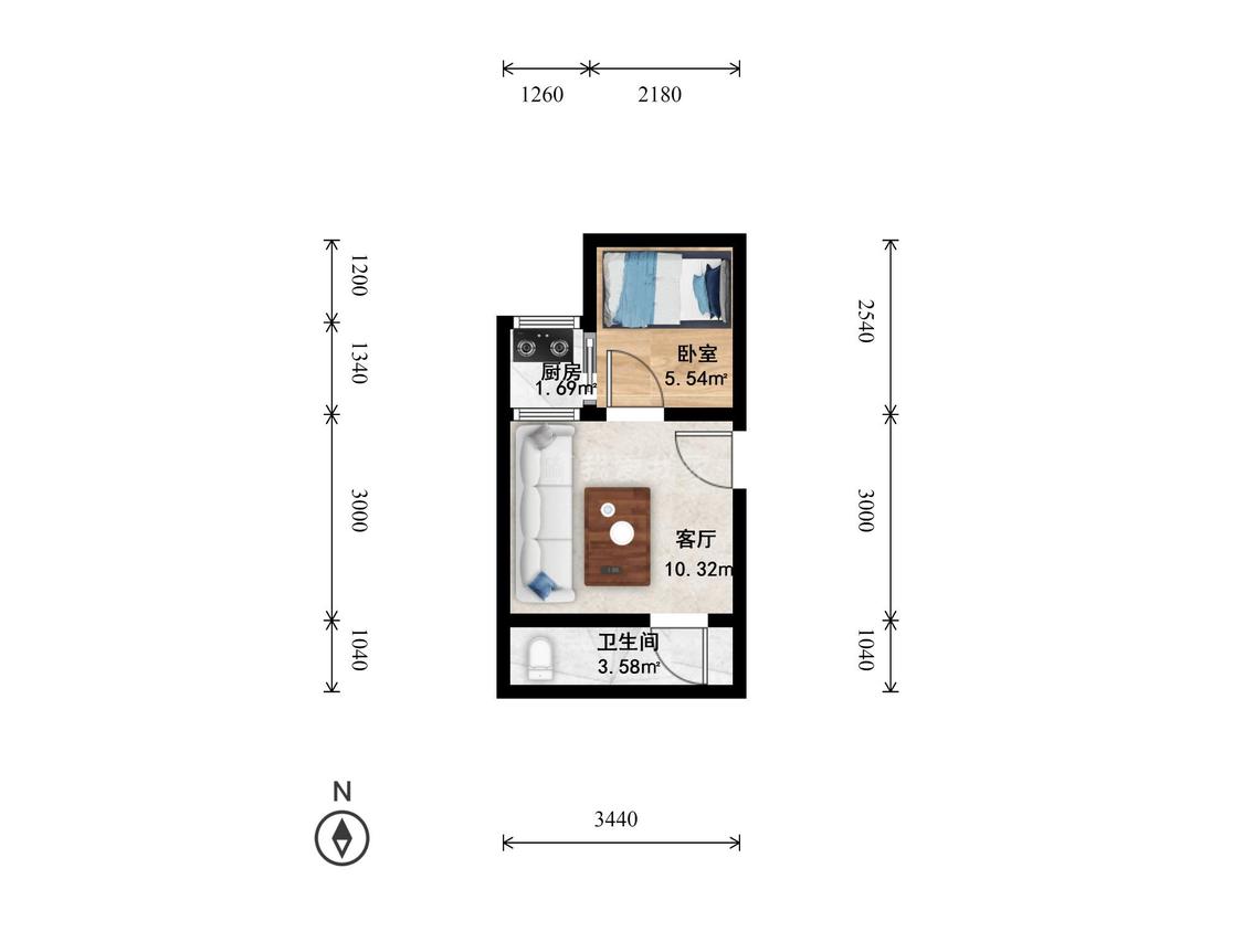 1室1厅 玺萌丽苑