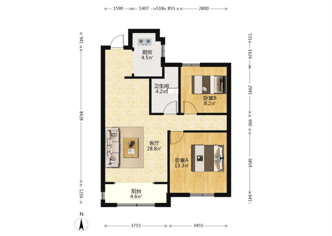2室1厅 云龙玉兰苑