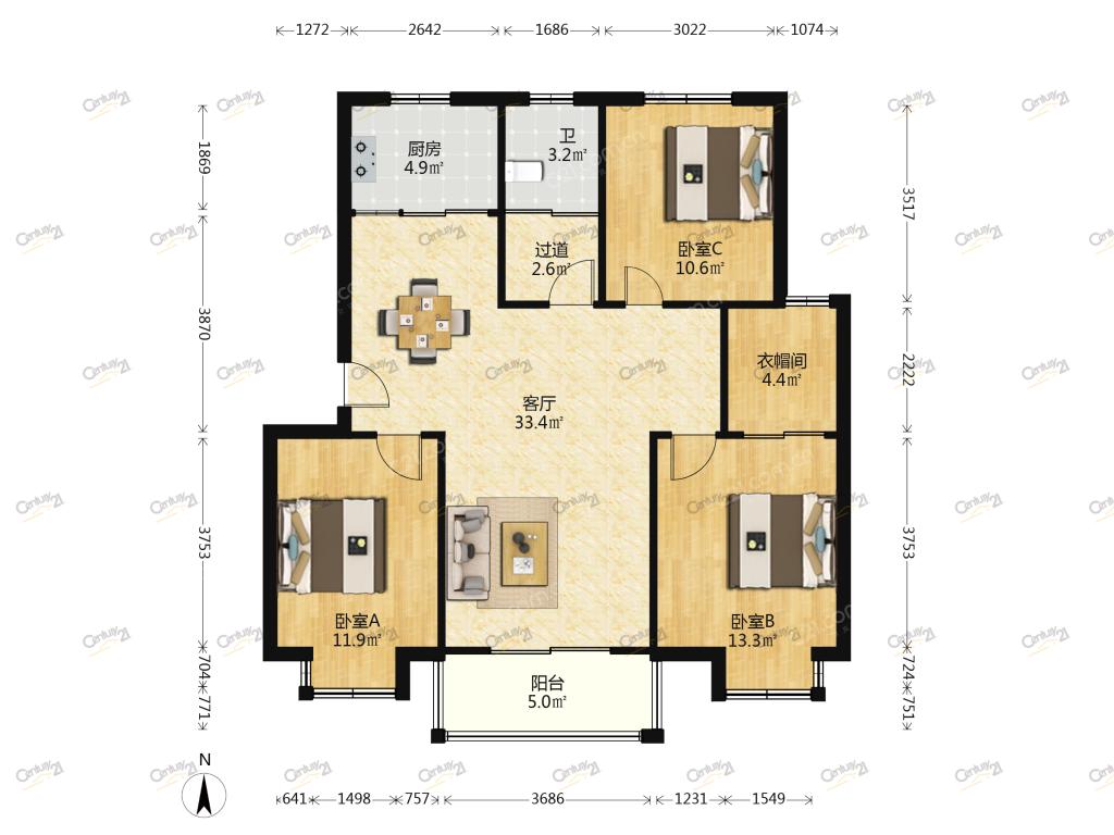 3室1厅 摩恩时代花园