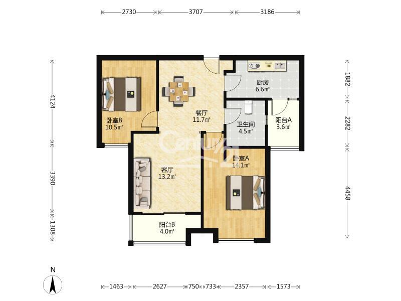 2室2厅 华润中央公园(三期北区)