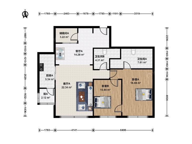 2室2厅 富力城(E区)