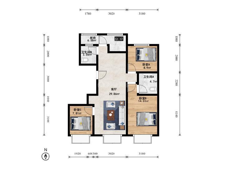 3室1厅 北京北小区
