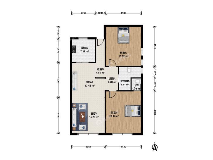 2室2厅 华盛大楼