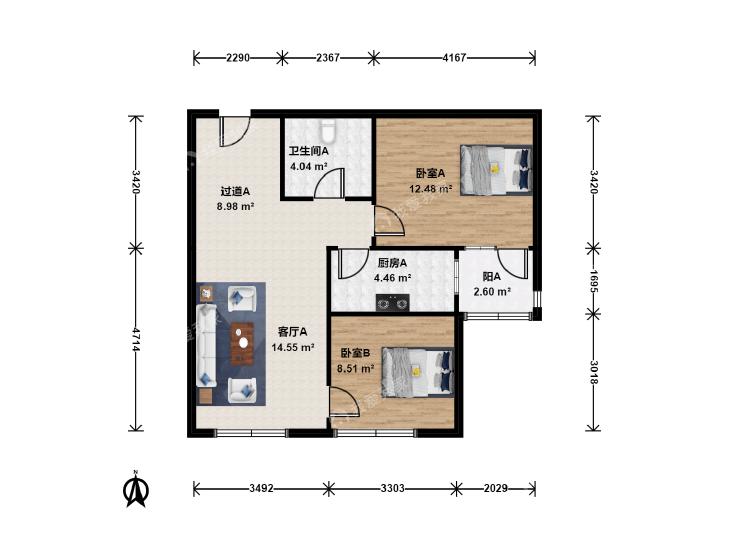 2室1厅 古城现代嘉园