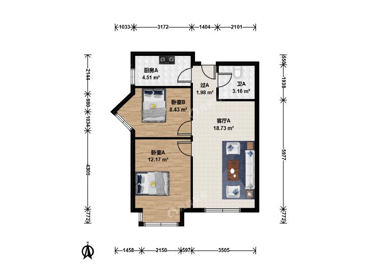 2室1厅 朝丰家园(十五号院)