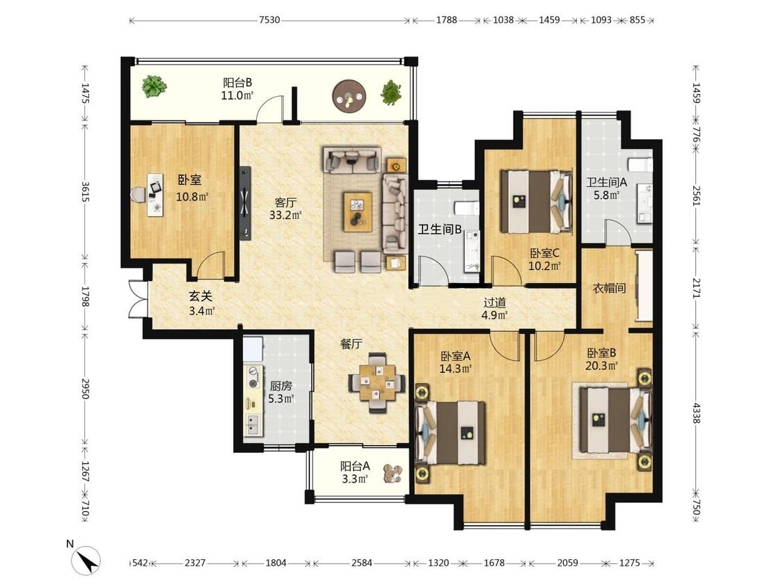 4室2厅 万科金域缇香