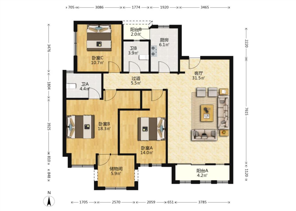 3室1厅