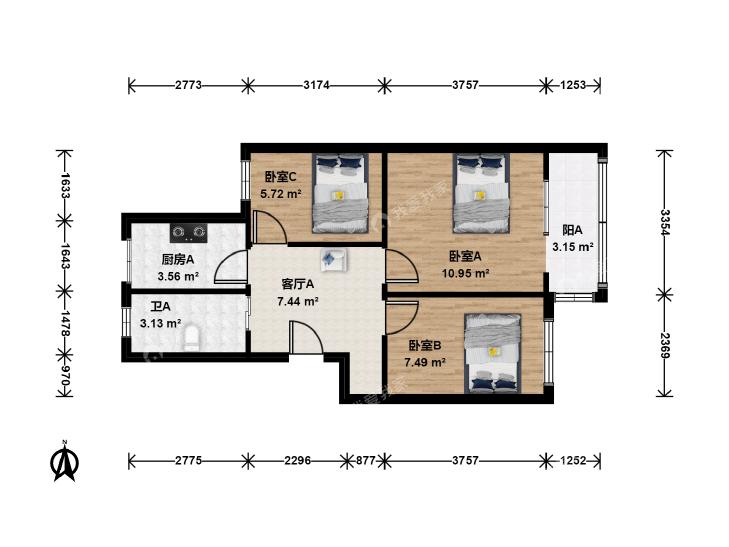 3室1厅 贾家花园(甲一号院)
