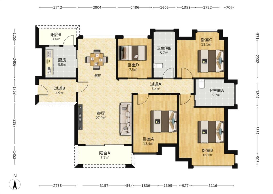 4室2厅 保利香槟国际