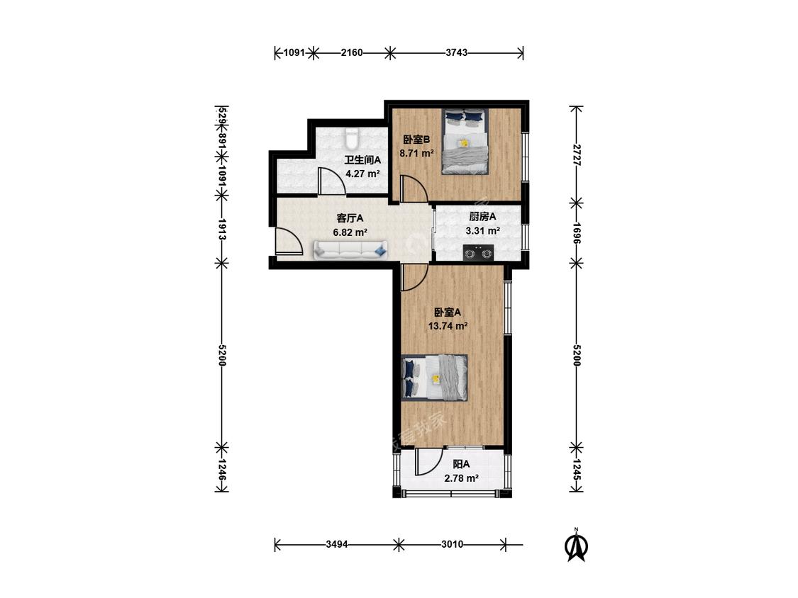 2室1厅 五路通北街3号院