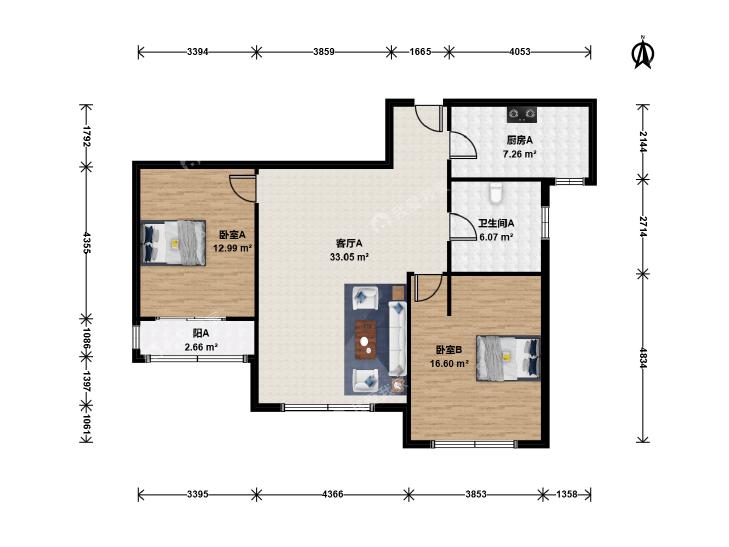 2室1厅 柏林爱乐(二期)