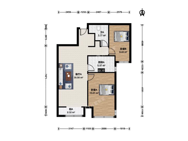 2室1厅 长阳半岛(3号院)