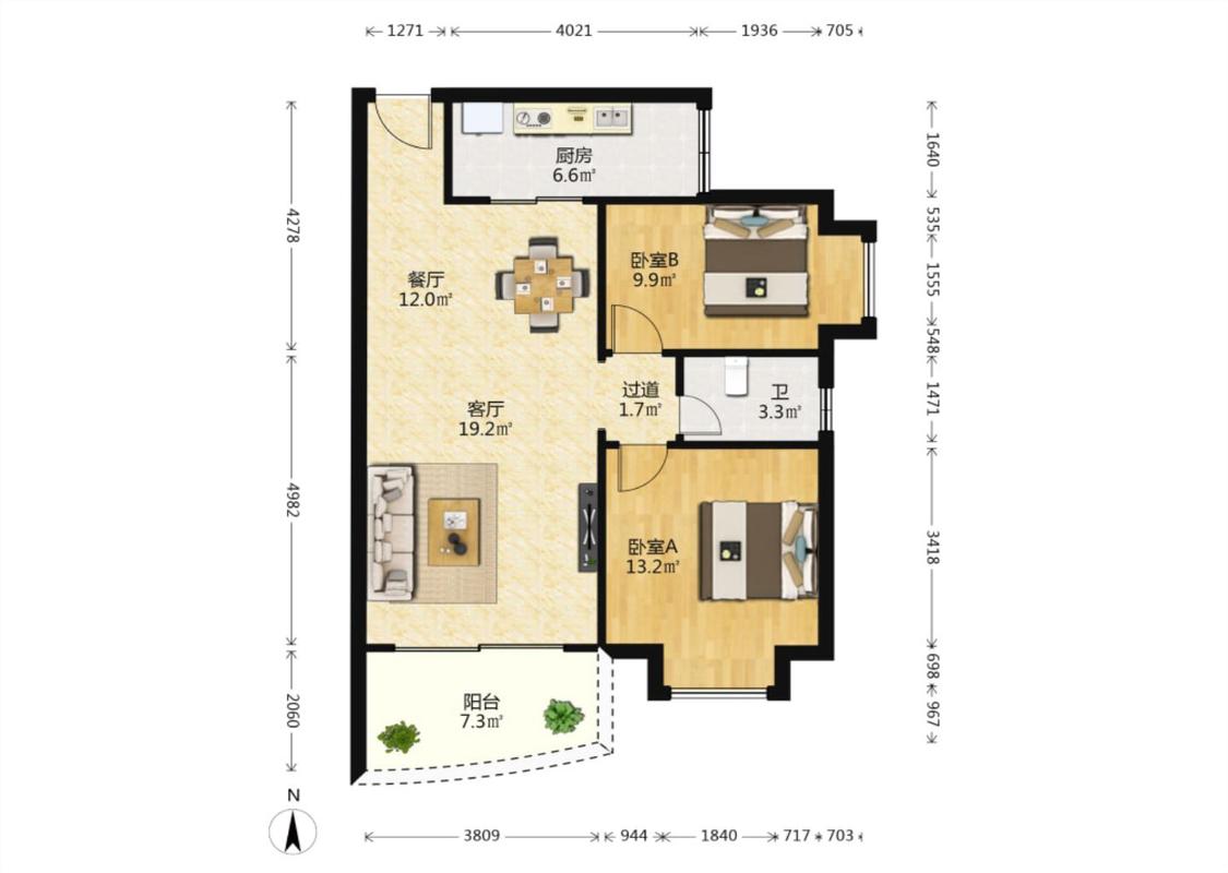 2室2厅 权兴花园