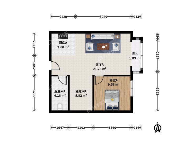 1室1厅 玺源台
