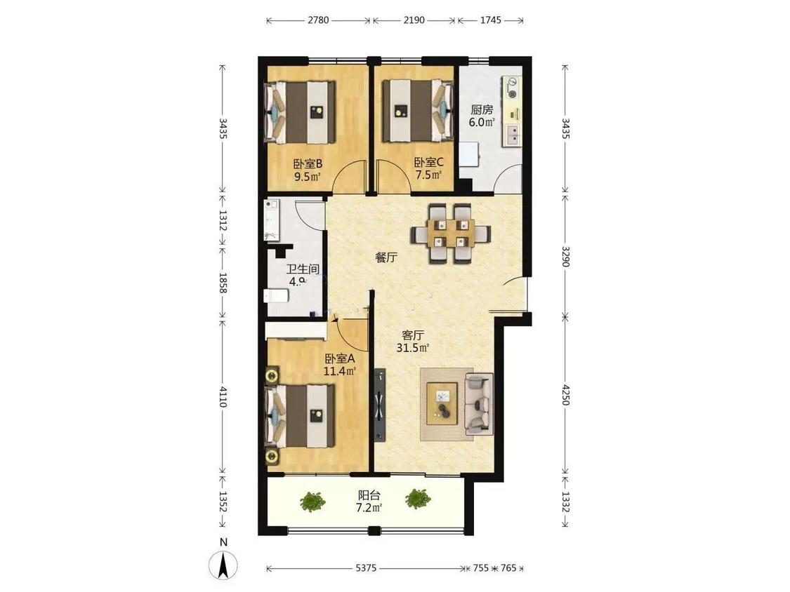 3室2厅 涑河国际城B区