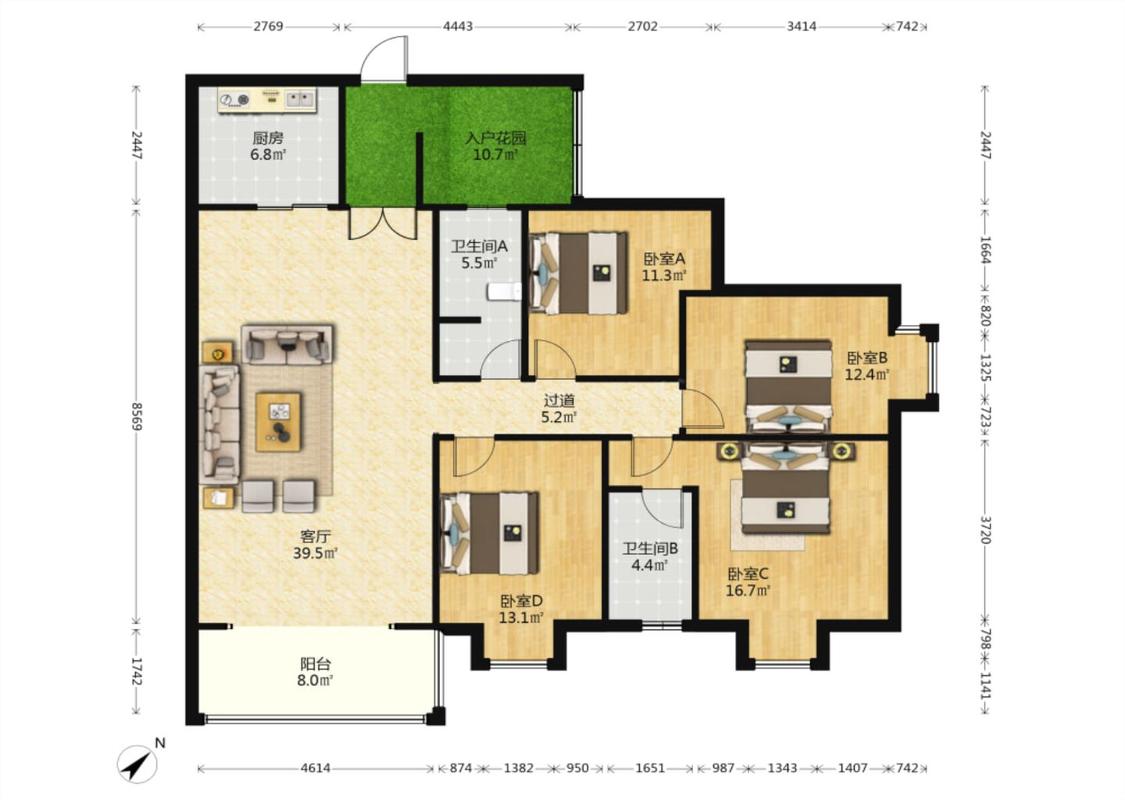 4室2厅 花果园(V区)