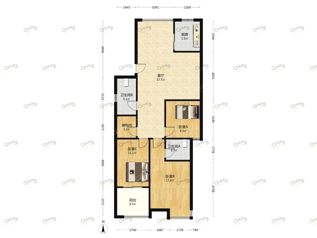 3室2厅 宝业城市绿苑(西区)