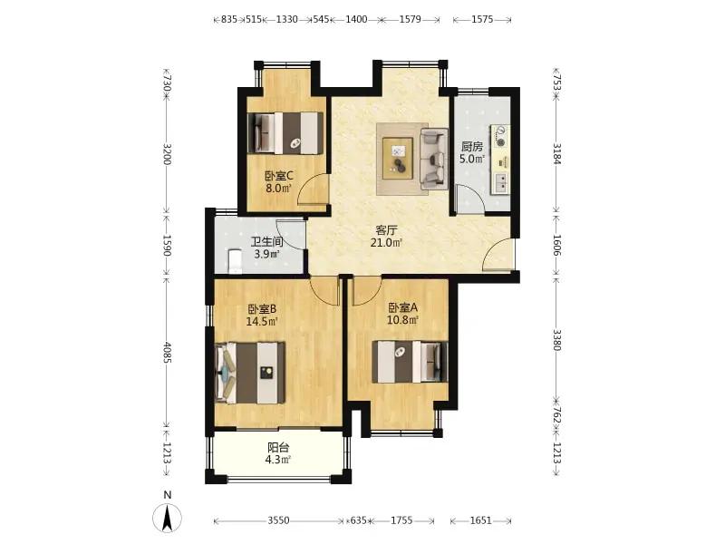 3室1厅 虎池苑