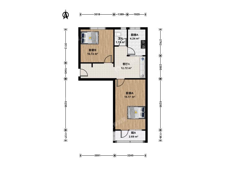2室1厅 东四西大街