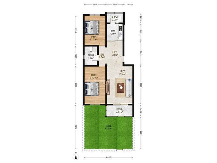 2室1厅 北潞冠家园