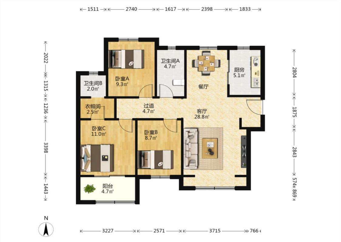 3室1厅 荣盛花语城(一期)