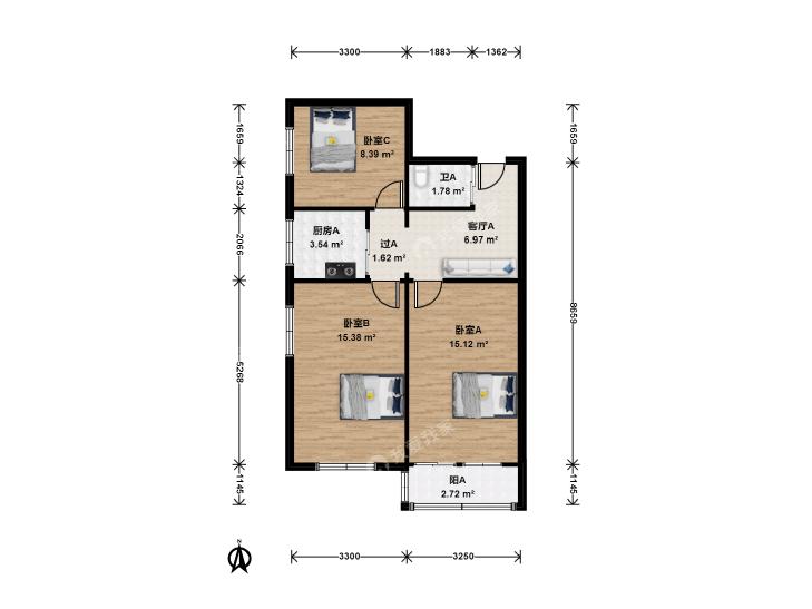 3室1厅 新明胡同小区