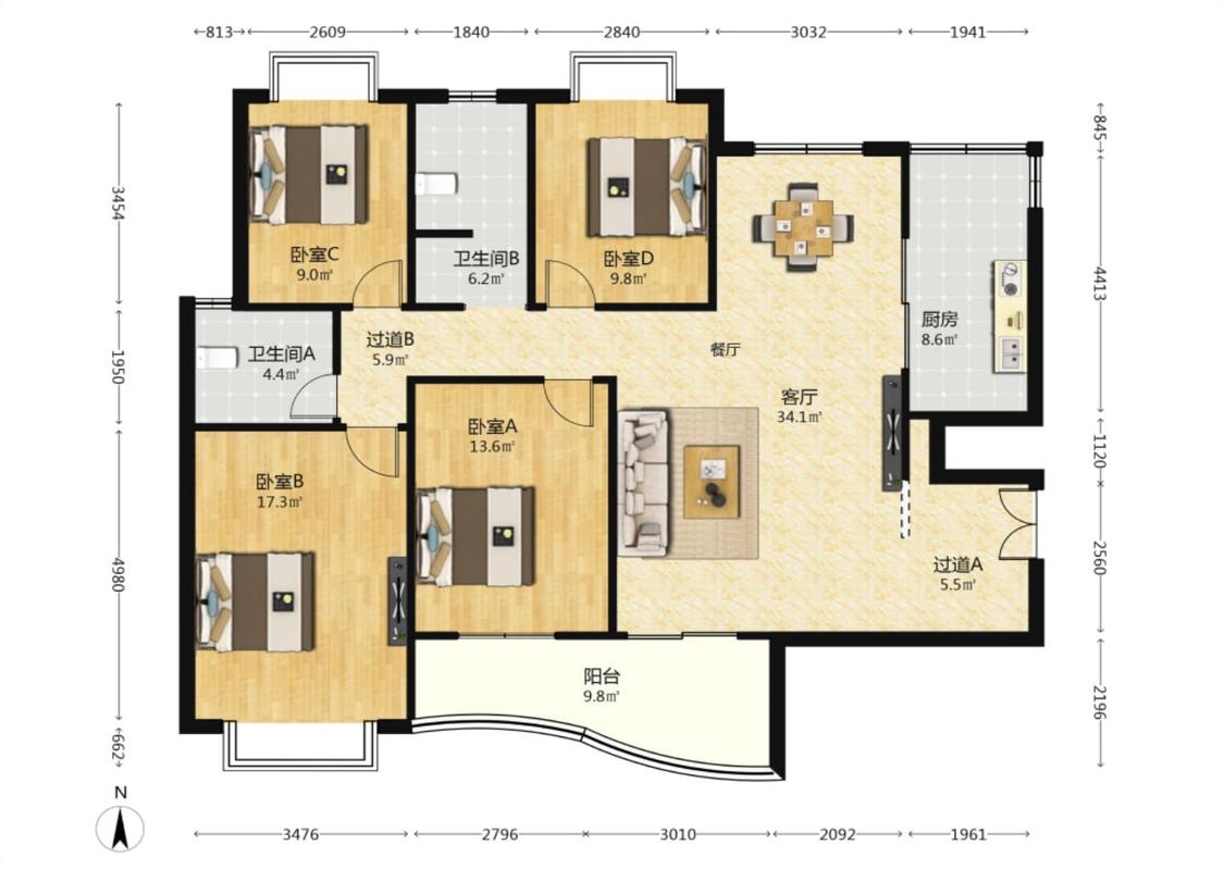4室2厅 海德卫城
