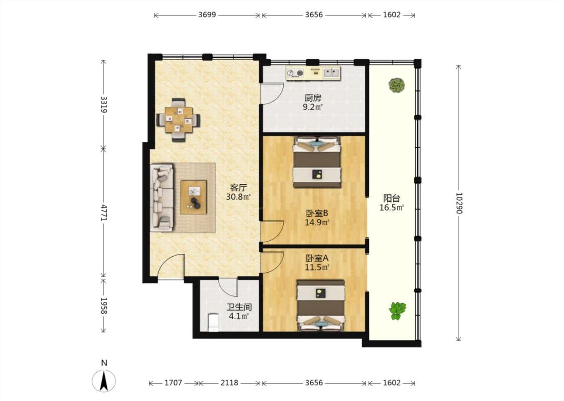 2室1厅 汇金城