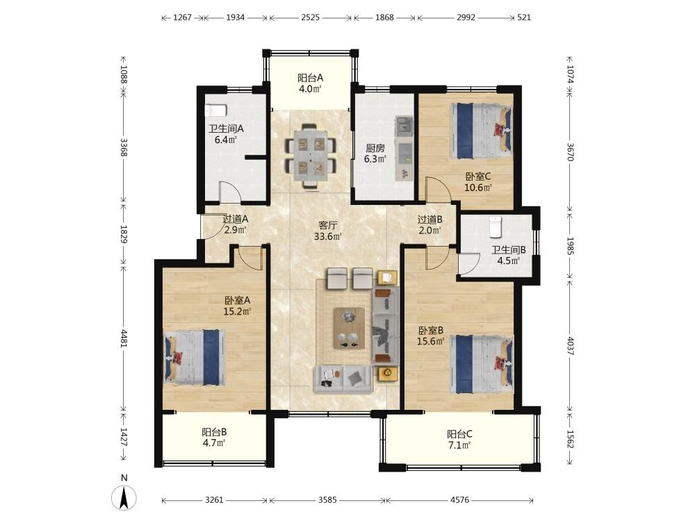 3室2厅 银盛泰书香嘉苑