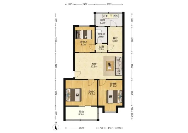 3室1厅 中州小区