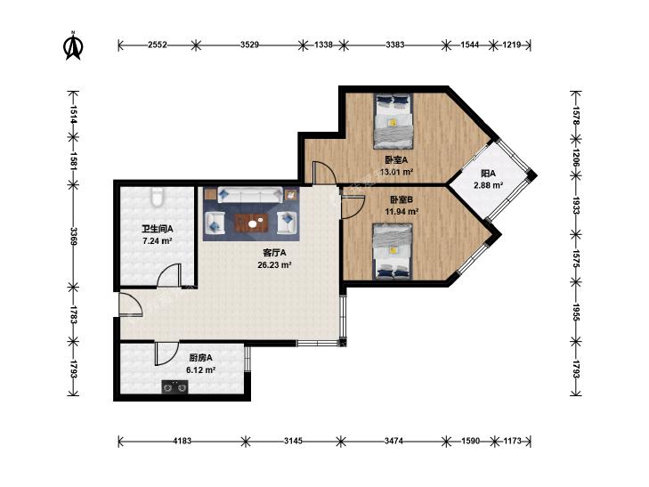 2室1厅 太月园