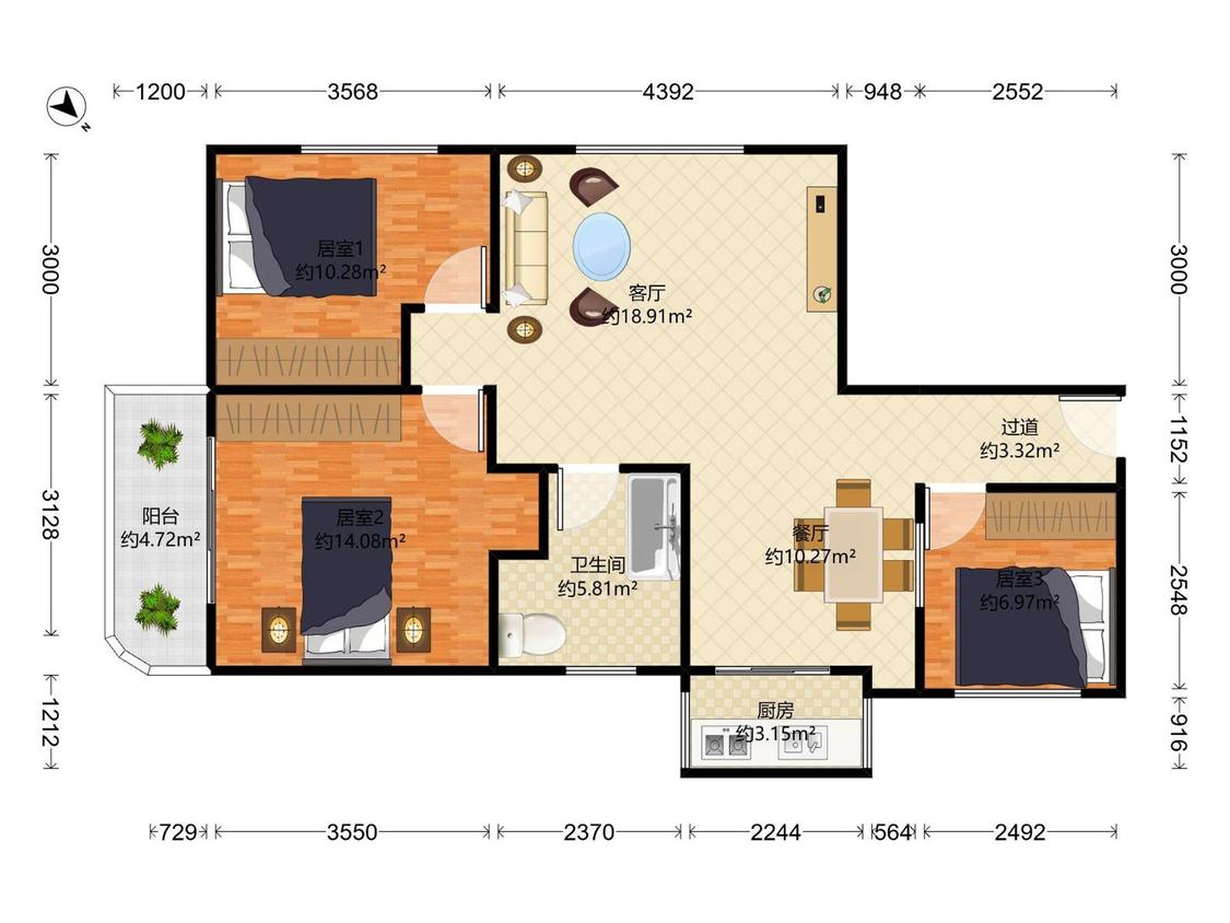 3室2厅