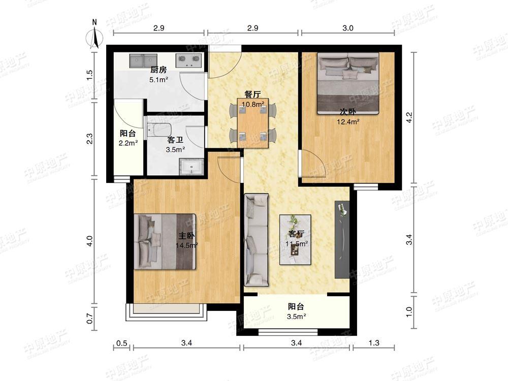 2室2厅 中邦大都会