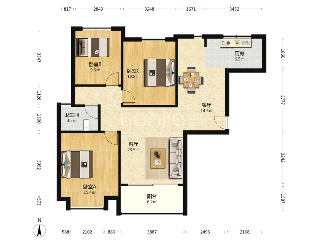 3室2厅 同济城市雅筑