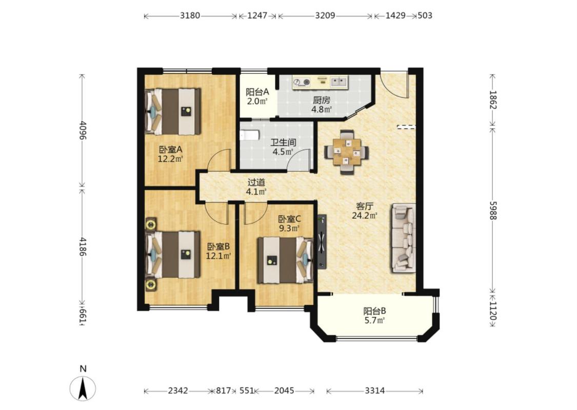 3室2厅