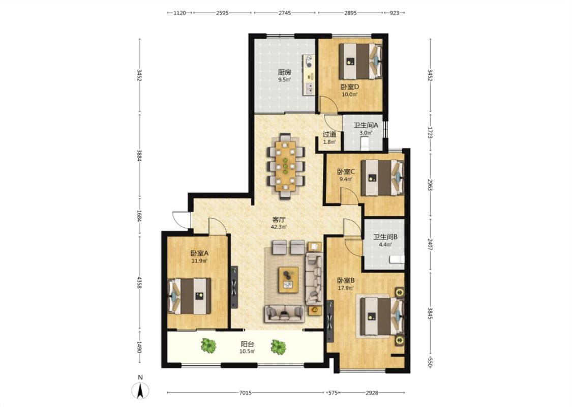 4室2厅 太原万科翡翠公园