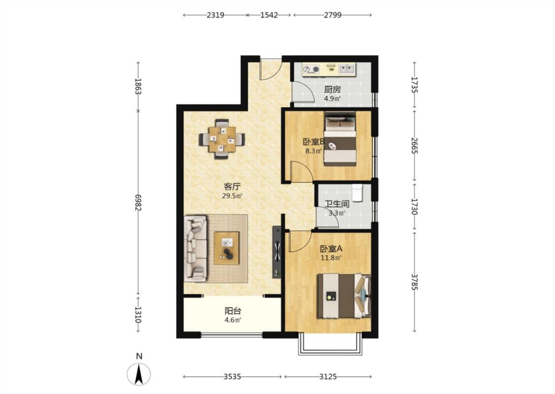 2室1厅 坤元时光城