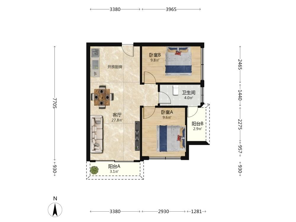 2室1厅 依山云锦