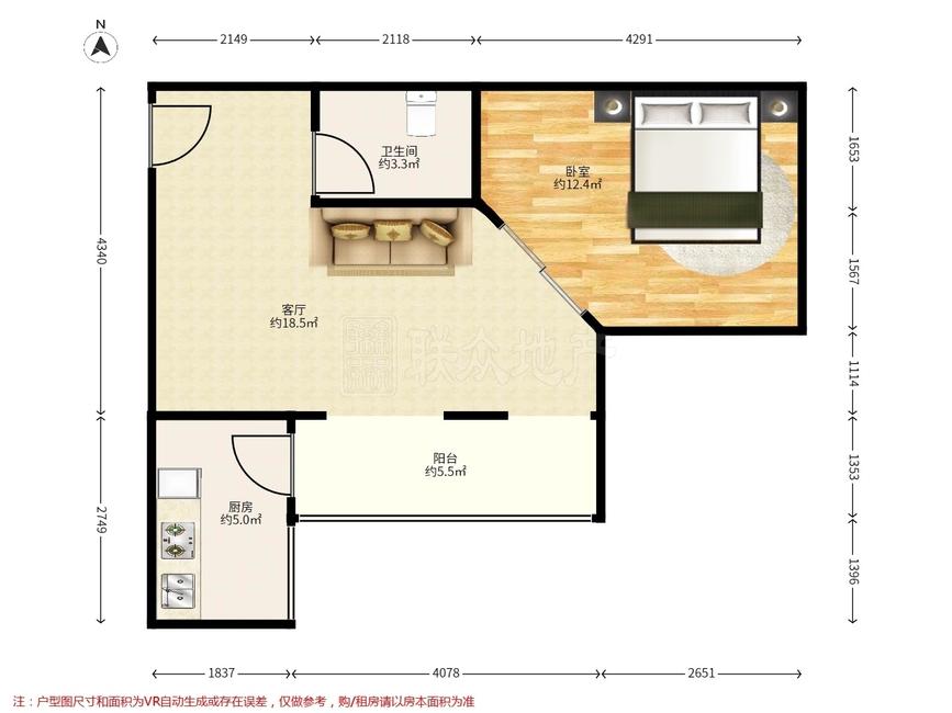 1室1厅 玺萌丽苑