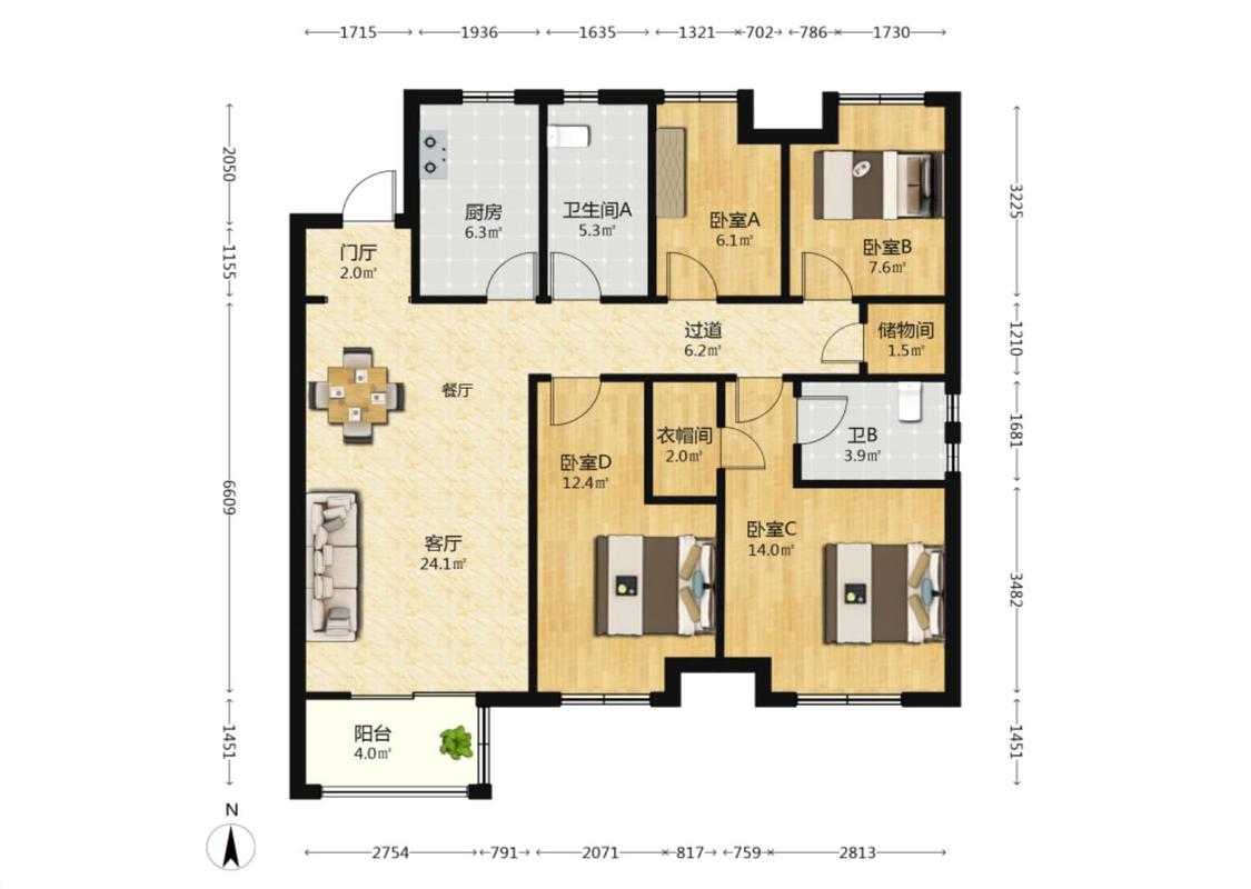 4室1厅 万科梦蝶花苑