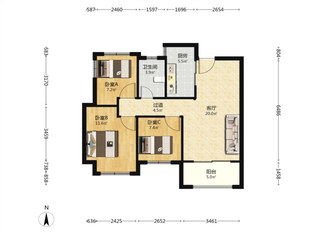 3室1厅 明发浦泰梦幻家