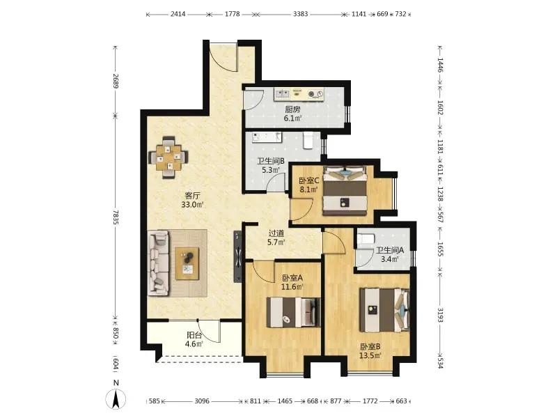 3室2厅 融创公园壹号(二期)