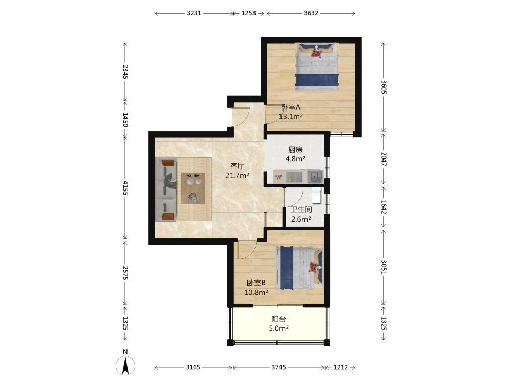 2室1厅 南方花园A组团
