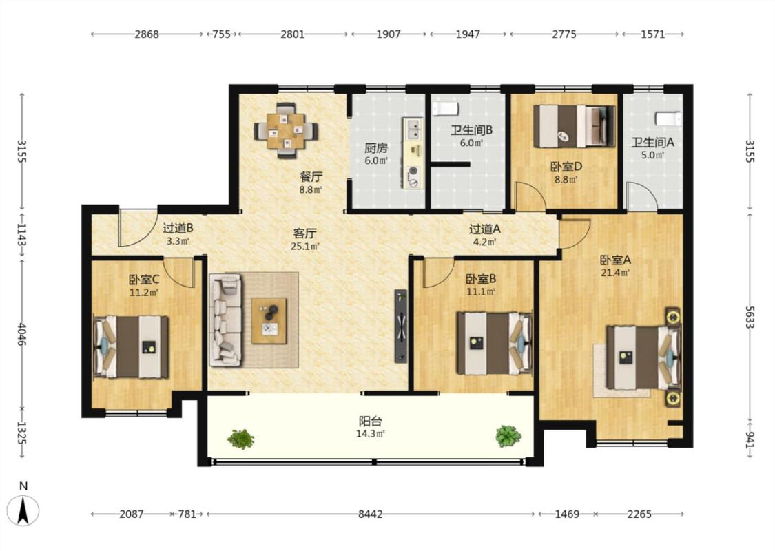 4室2厅 房源君悦华府