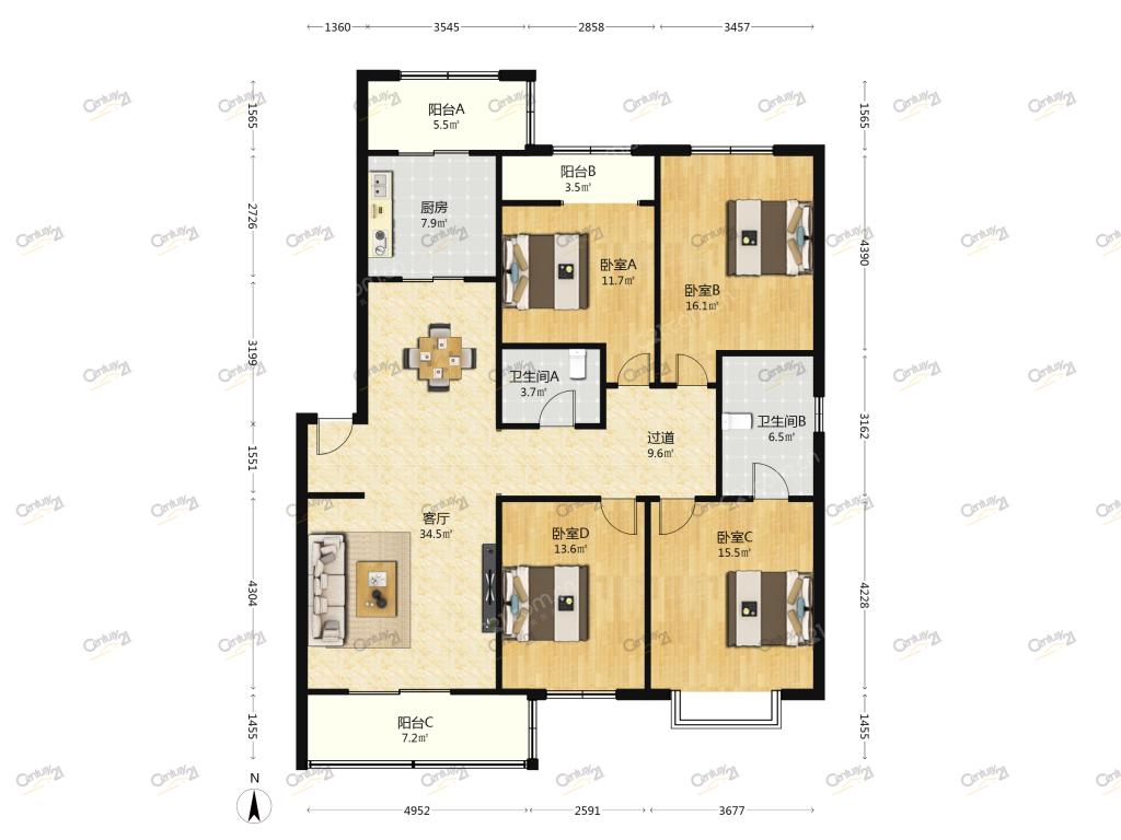 4室2厅 紫薇田园都市(C区)