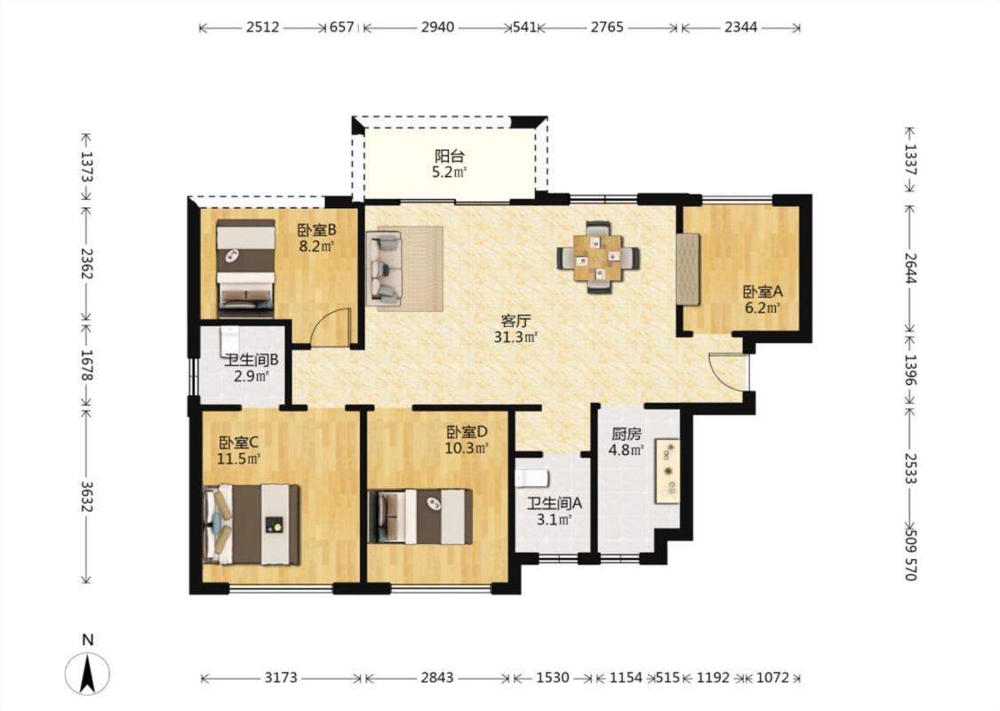 4室2厅 中交香颂花园