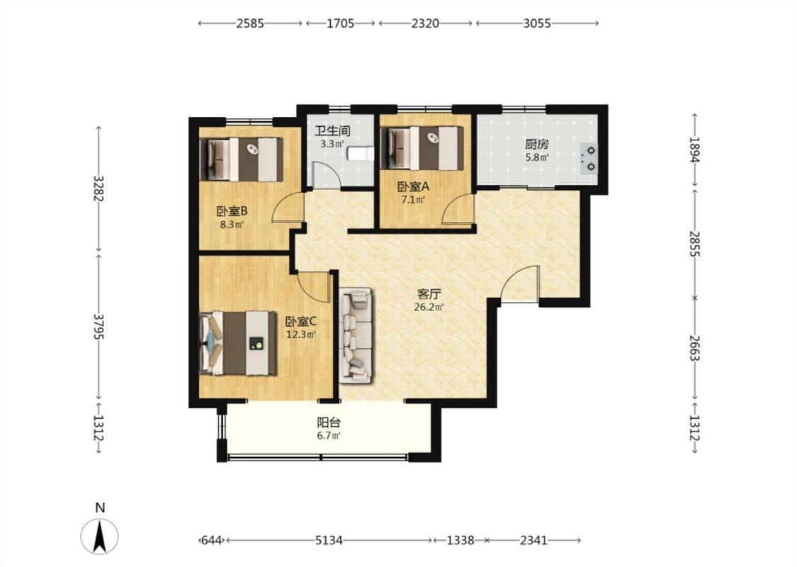 3室1厅 荣盛城(一期)