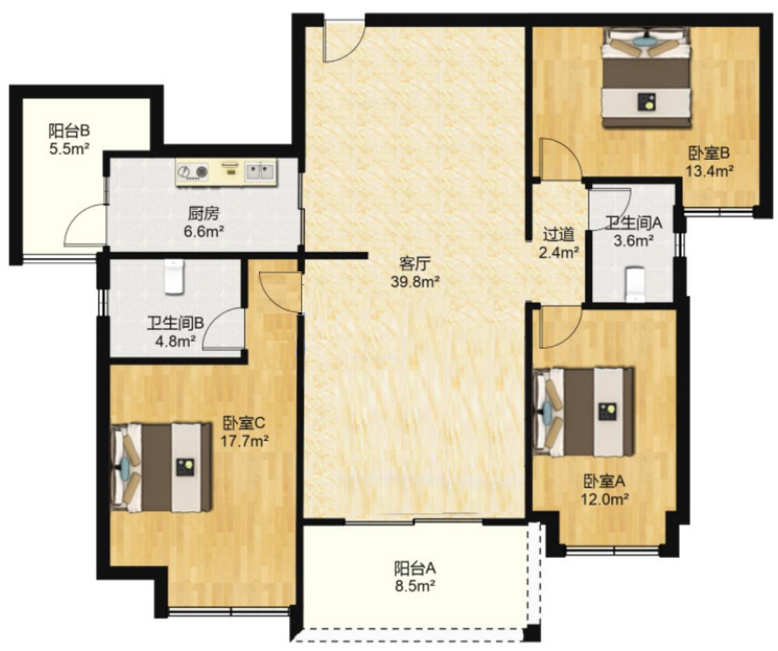 3室2厅 经纬凯旋城