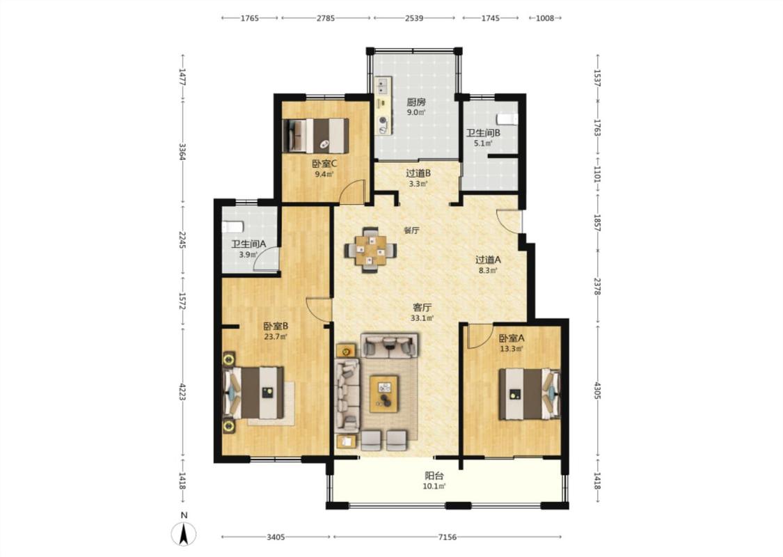 3室1厅