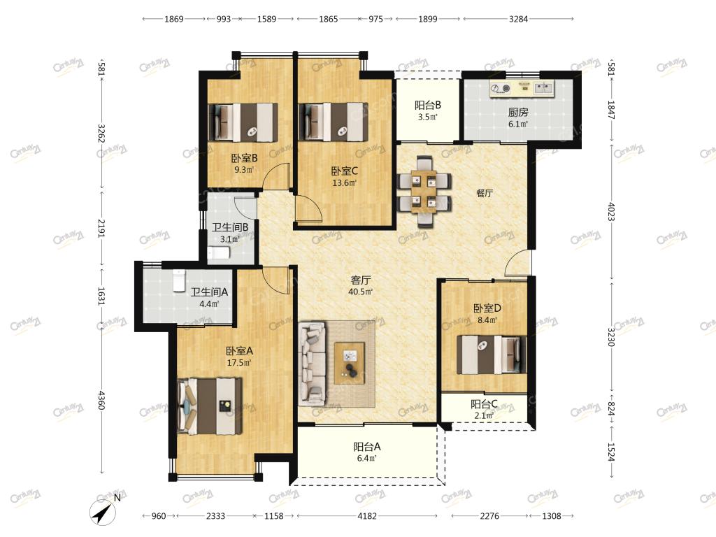 4室2厅 宇宏健康花城